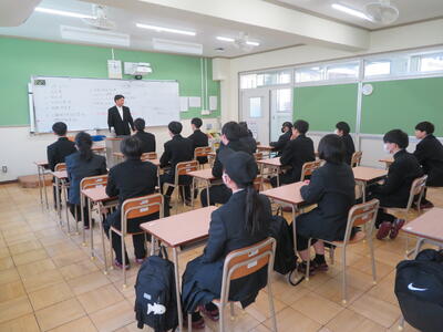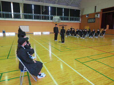 校長訓話では、「新年度は、2学年は最高学年として、1学年は学校の中心として、自覚ある行動をしましょう。
