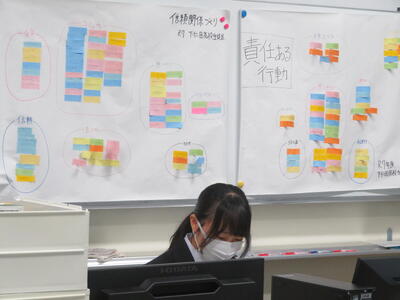 協議の後半では、いじめ防止につながるあいうえお作文が各校から選出され、その中で「ひびきあう」という作品が代表作品に決定しました。