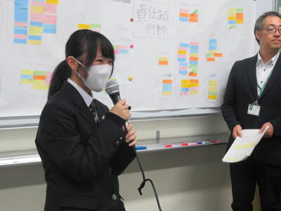 本校生徒も代表として参加し、いじめを「しない」という意識だけでなく、いじめを防止するために何を「する」のかについて、有意義な話し合いに参加しました。
