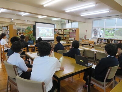 本校からは、新海誠監督の作品「君の名は。」の小説版と映画「ハナミズキ」の小説版を紹介し、その世界観や登場人物の魅力について発表しました。